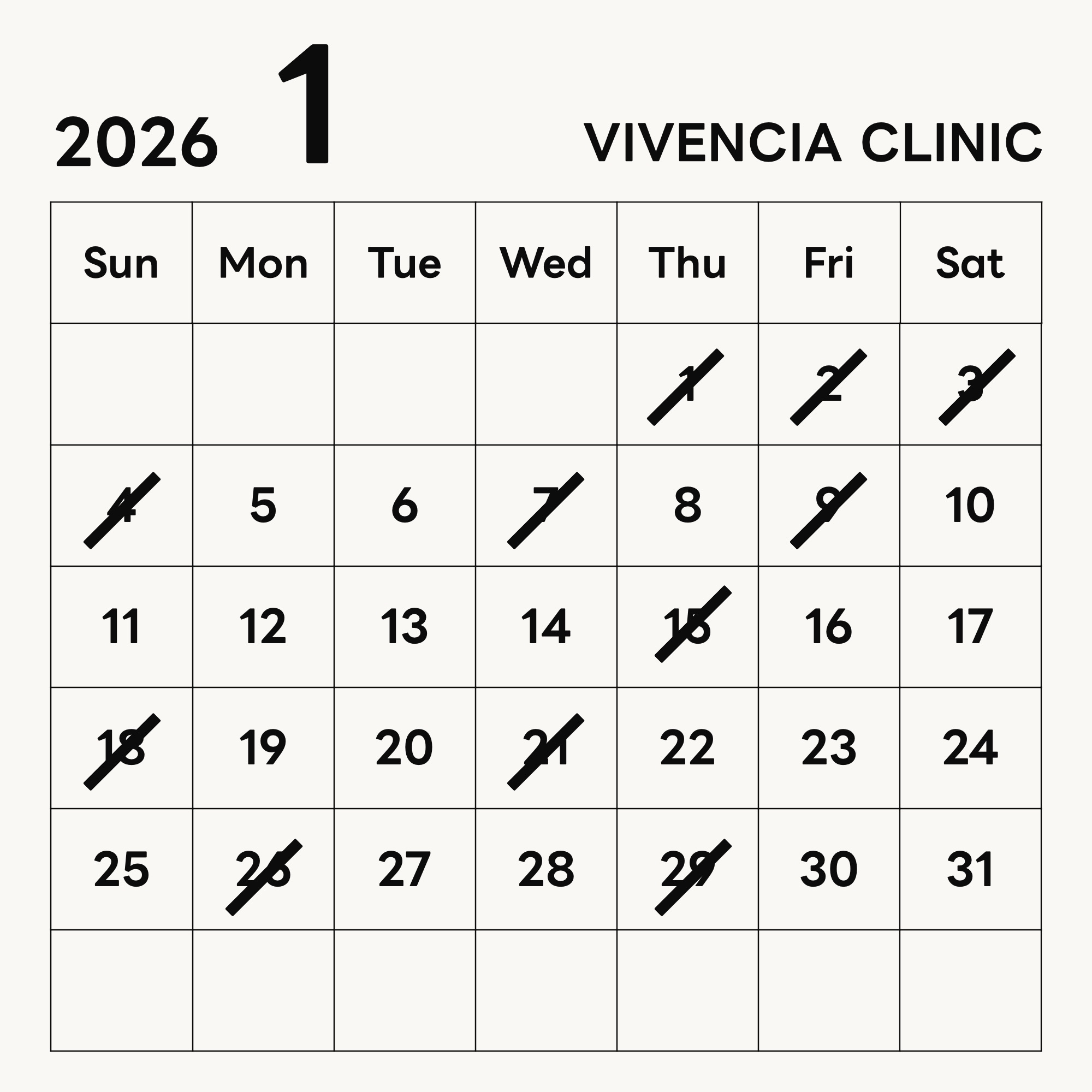 《 2026年1月〜2026年5月の休診日予定 》