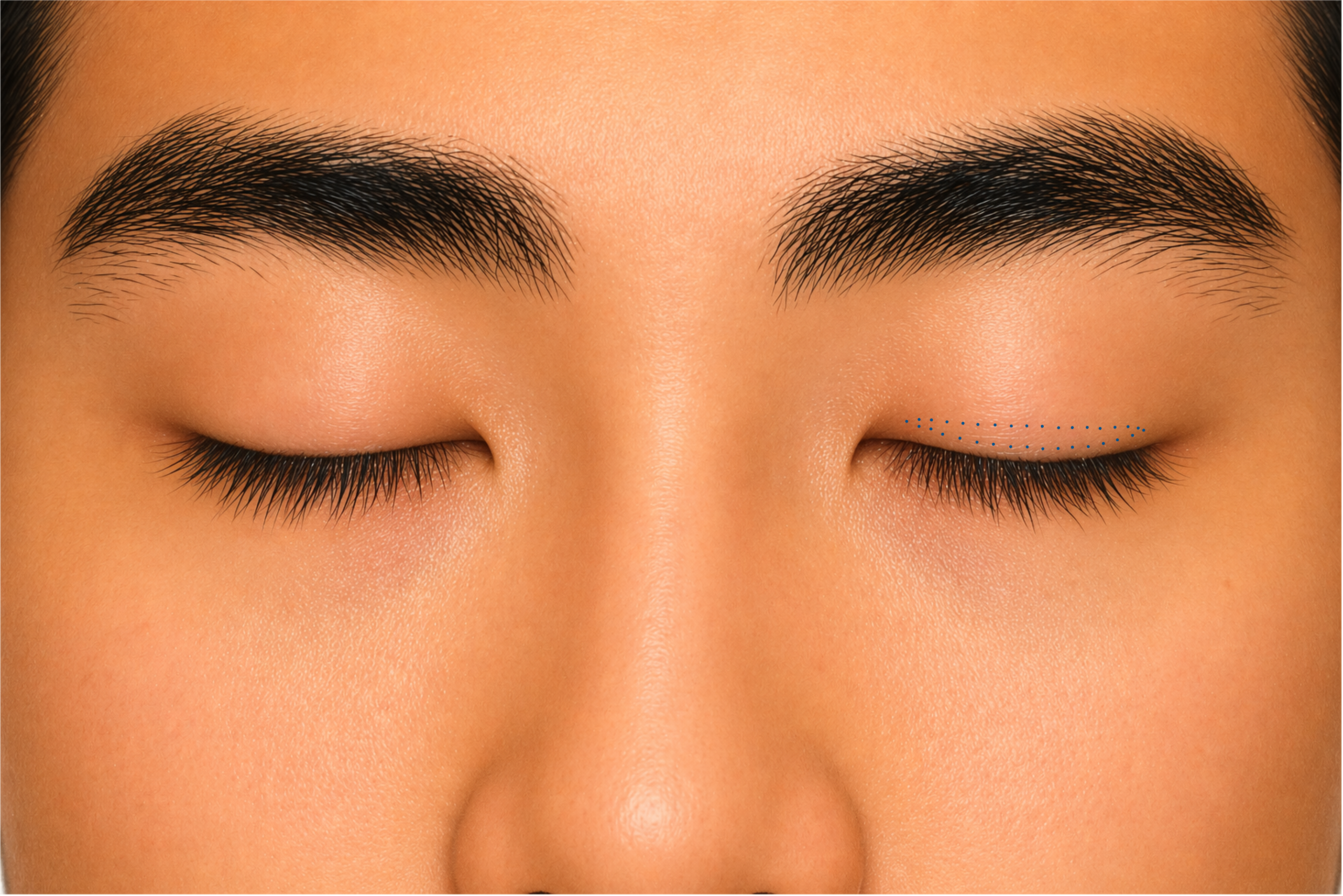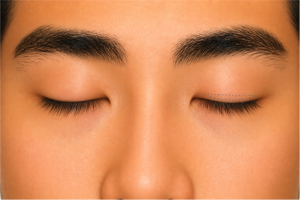 (二重瞼だと、睫毛の生え際が見えますが、それが隠れています)